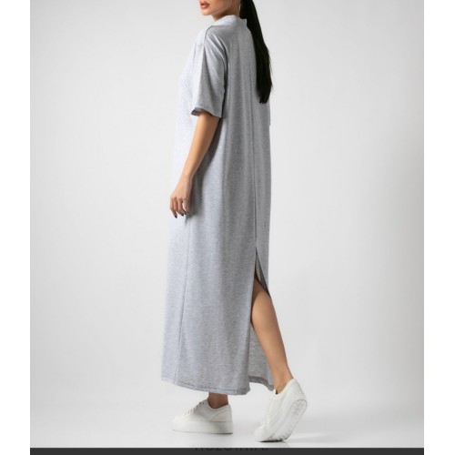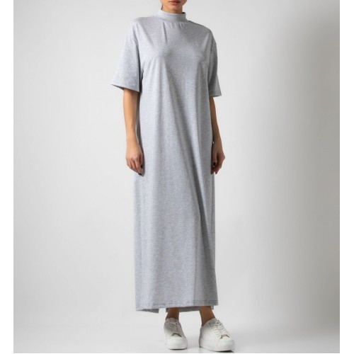 [S/M] Φόρεμα maxi βαμβακερό κοντομάνικο με ριπ λουπέτο Γκρι μελανζέ light