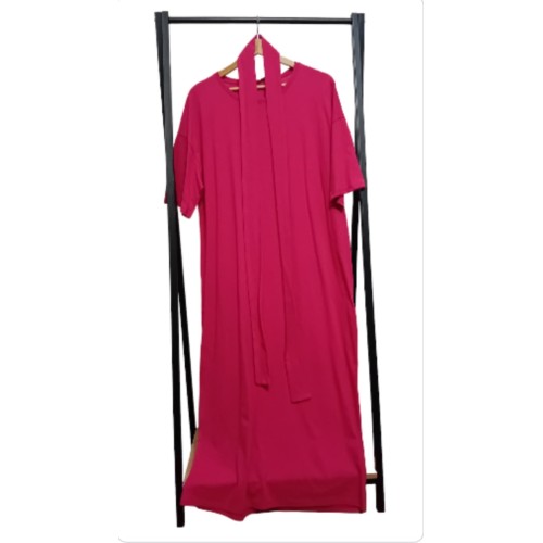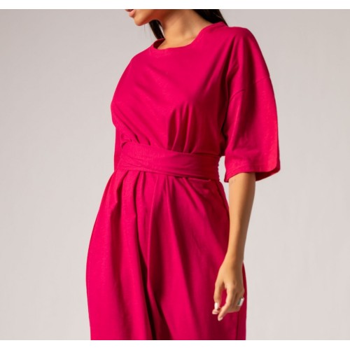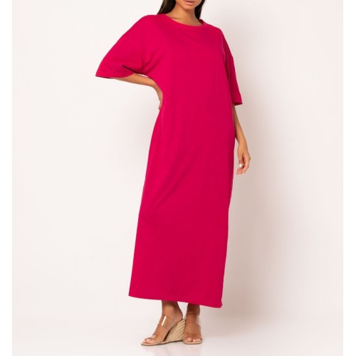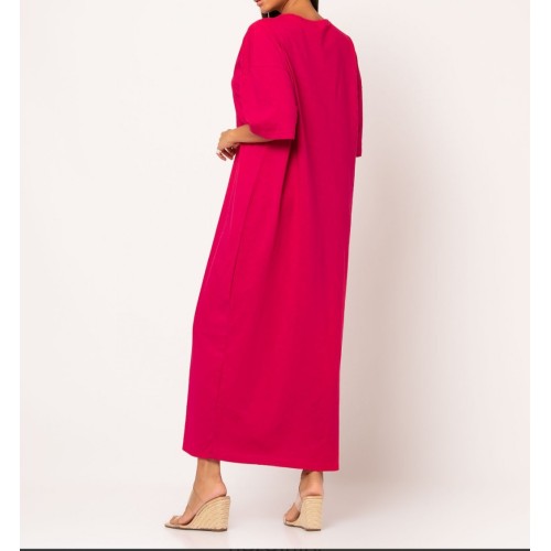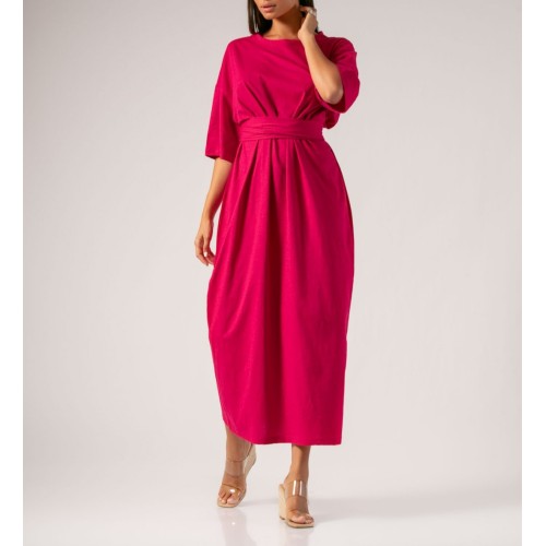 [OS] Φόρεμα maxi κοντομάνικο με ζώνη Φούξια