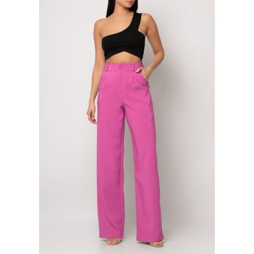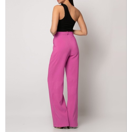 [L] Παντελόνι φαρδύ με πιέτες Ροζ