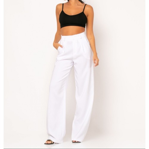 [XL] Παντελόνι φαρδύ με πιέτες Εκρού