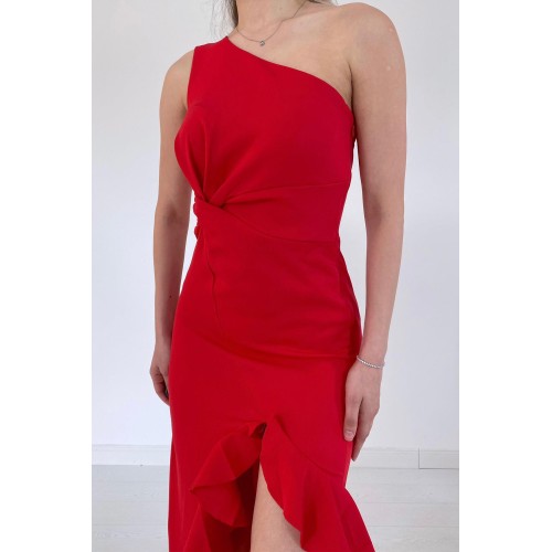 Φόρεμα με έναν ώμο,με ελαστικότητα,maxi βολάν