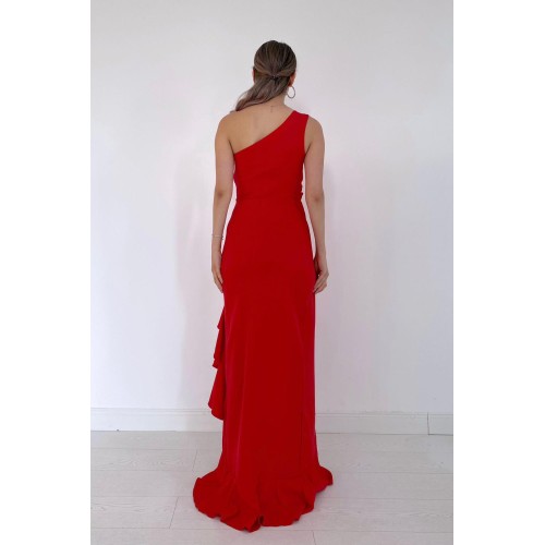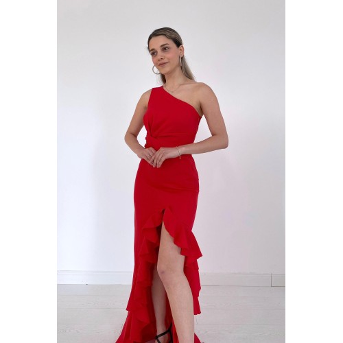 Φόρεμα με έναν ώμο,με ελαστικότητα,maxi βολάν