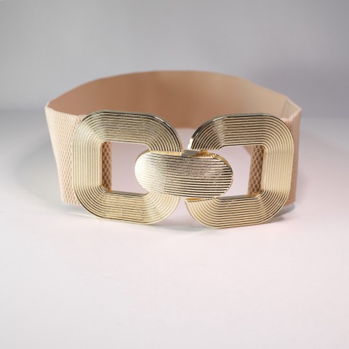 Ελαστική Ζώνη Με Χρυσή Αγκράφα Μπεζ